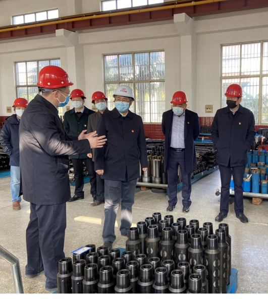 在調(diào)研過(guò)程中,徐書記首先了解了公司的新冠疫情防控工作和生產(chǎn)復(fù)工情況,重點(diǎn)就復(fù)工后減少員工聚集和集體活動(dòng)作出了明確指示。在宏達(dá)機(jī)械的生產(chǎn)車間內(nèi),總經(jīng)理顧靜波向徐書記介紹了公司的主營(yíng)業(yè)務(wù)情況,尤其是公司今年重點(diǎn)推進(jìn)項(xiàng)目——頁(yè)巖氣壓裂關(guān)鍵工具可溶解橋塞做了詳細(xì)的匯報(bào)。徐書記肯定了宏達(dá)機(jī)械各項(xiàng)工作,并且要求宏達(dá)機(jī)械要在條件允許的情況下,加快車間的智能化改造,為我縣經(jīng)濟(jì)發(fā)展做出更大的貢獻(xiàn)。 |